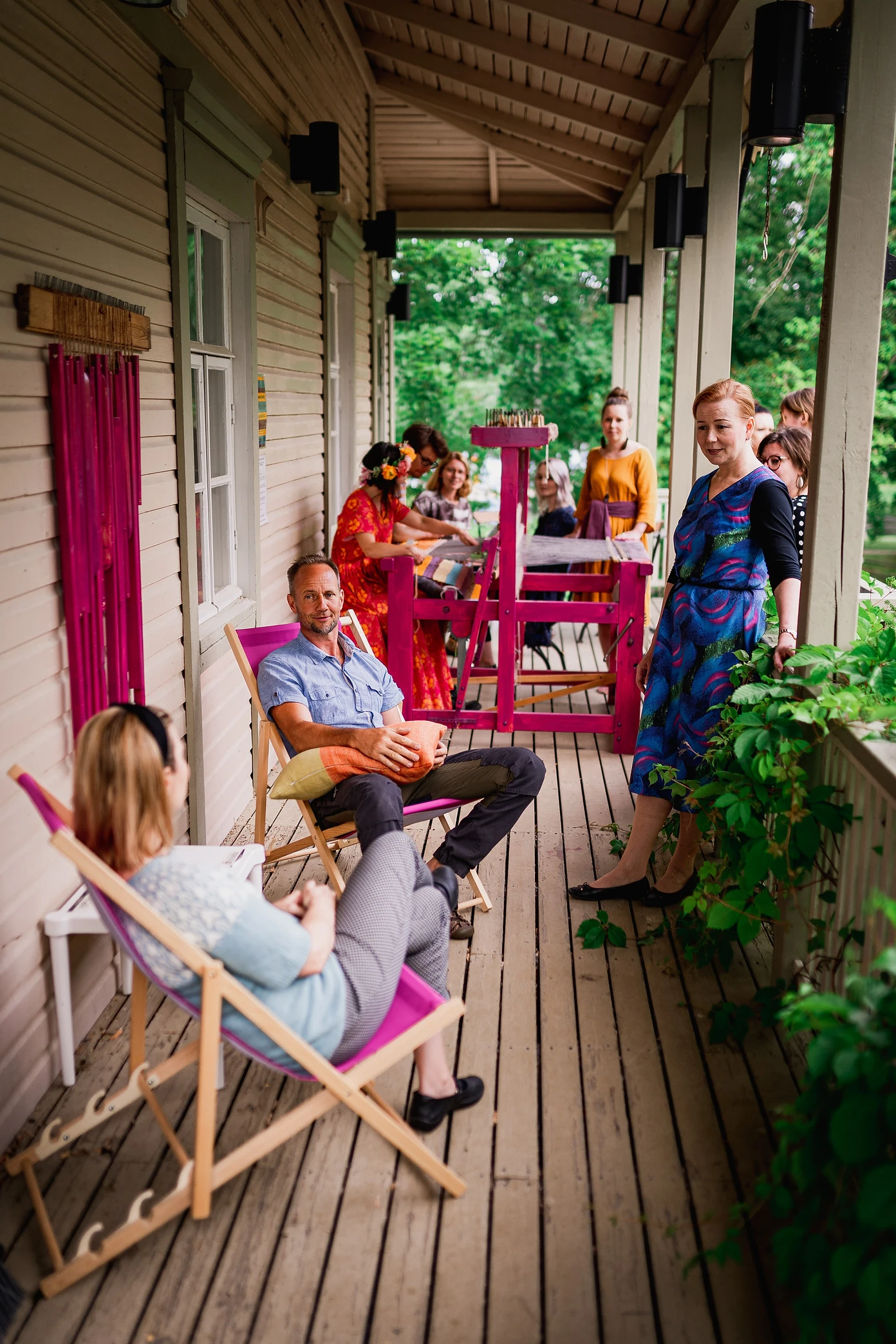 Luovan työn flow’ta koen kangaspuiden ääressä, kun kudon kangasta ilman tarkkaa suunnitelmaa. Voin antaa intuition ohjata värien ja lankojen valintaa. Työssä on leikkiä, innostusta ja työn imua parhaimmillaan. Taustalla on vuosien kokemuksen tuoma hiljainen tieto materiaaleista ja siitä, miten kangas on parasta kutoa sekä ehkäpä myös aiempien sukupolvien käsityötieto, jonka olen perinyt geeneissäni.