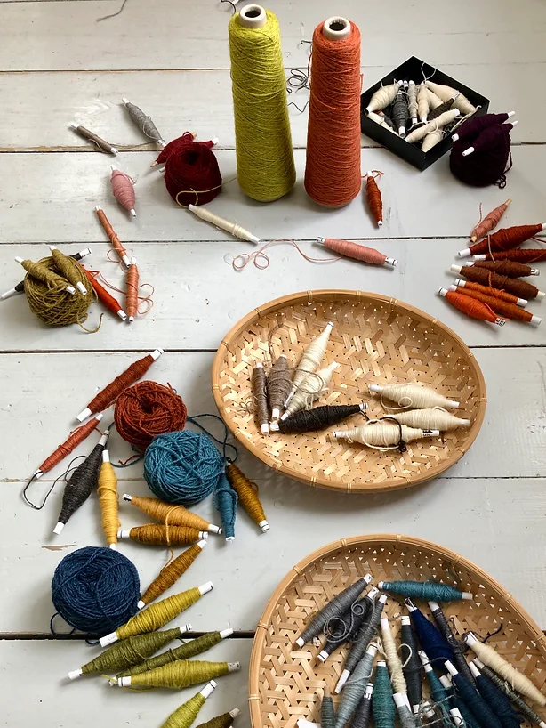 Lankojen järjestelyä kudontaa varten. Kuva: Mervi Pesonen