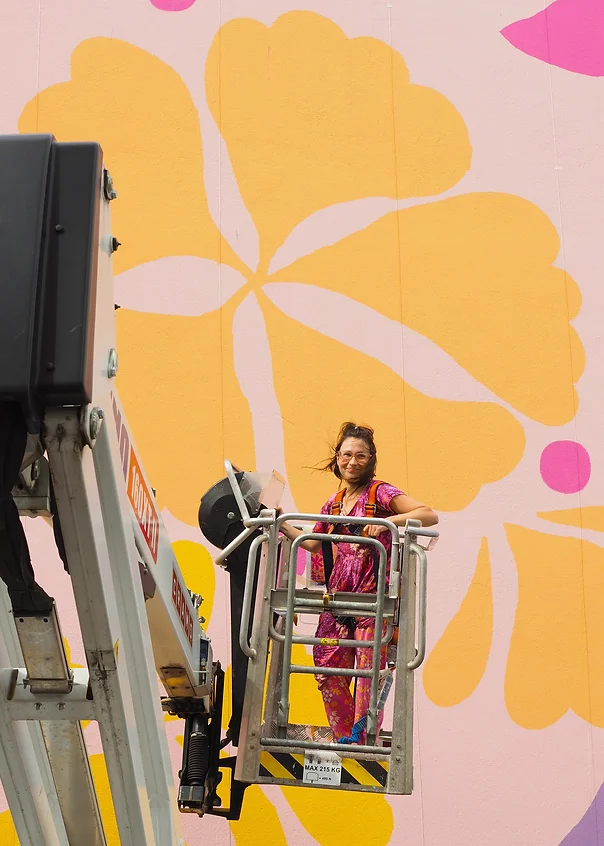 Turtiainen maalaa ensimmäistä muraaliaan. Kuva: Veera Kolehmainen